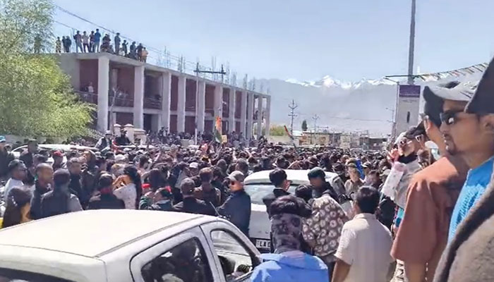 ਦਰਅਸਲ, ਵਿਦਿਆਰਥੀਆਂ ਅਤੇ ਸਥਾਨਕ ਲੋਕਾਂ ਨੇ ਸਮਾਜਿਕ ਕਾਰਕੁਨ ਸੋਨਮ ਵਾਂਗਚੁਕ ਦੇ ਸਮਰਥਨ ਵਿੱਚ ਵਿਰੋਧ ਪ੍ਰਦਰਸ਼ਨ ਕੀਤਾ, ਜੋ ਕੇਂਦਰ ਸ਼ਾਸਤ ਪ੍ਰਦੇਸ਼ ਲੱਦਾਖ ਨੂੰ ਪੂਰਨ ਰਾਜ ਦਾ ਦਰਜਾ ਦੇਣ ਦੀ ਮੰਗ ਨੂੰ ਲੈ ਕੇ 15 ਦਿਨਾਂ ਤੋਂ ਭੁੱਖ ਹੜਤਾਲ ‘ਤੇ ਹੈ।
