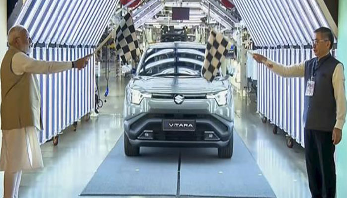 ਚੰਡੀਗੜ੍ਹ, 26 ਅਗਸਤ 2025 – ਪ੍ਰਧਾਨ ਮੰਤਰੀ ਨਰਿੰਦਰ ਮੋਦੀ ਨੇ ਗੁਜਰਾਤ ਦੇ ਹੰਸਲਪੁਰ ਨਿਰਮਾਣ ਪਲਾਂਟ ਤੋਂ ਮਾਰੂਤੀ ਸੁਜੁਕੀ ਦੇ ਪਹਿਲੇ ਇਲੈਕਟ੍ਰਿਕ ਵਾਹਨ ਈ-ਵਿਟਾਰਾ ਨੂੰ ਮੰਗਲਵਾਰ ਨੂੰ ਹਰੀ ਝੰਡੀ ਦਿਖਾ ਕੇ ਰਵਾਨਾ ਕੀਤਾ। ਭਾਰਤ ‘ਚ ਬਣੀ ਮਾਰੂਤੀ ਈ-ਵਿਟਾਰਾ ਦਾ ਜਾਪਾਨ ਸਣੇ 100 ਤੋਂ ਵੱਧ ਦੇਸ਼ਾਂ ‘ਚ ਨਿਰਯਾਤ ਕੀਤਾ ਜਾਵੇਗਾ। ਪ੍ਰਧਾਨ ਮੰਤਰੀ ਮੋਦੀ ਨੇ ਸੁਜੁਕੀ, ਤੋਸ਼ਿਬਾ ਅਤੇ ਡੇਂਸੋ ਦੇ ਨਿਰਮਿਤ ਲਿਥੀਅਮ-ਆਯਨ ਬੈਟਰੀ ਨਿਰਮਾਣ ਪਲਾਂਟ ਦਾ ਵੀ ਉਦਘਾਟਨ ਕੀਤਾ, ਜੋ ਹਾਈਬ੍ਰਿਡ ਅਤੇ ਇਲੈਕਟ੍ਰਿਕ ਵਾਹਨ ਬੈਟਰੀ ਉਤਪਾਦਨ ‘ਚ ਸਹਾਇਕ ਹੋਵੇਗਾ।