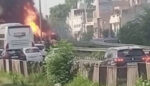 ਕੈਮੀਕਲ ਨਾਲ ਭਰੇ ਟੈਂਕਰ ਅਤੇ ਕਾਰ ਦੀ ਟੱਕਰ ਤੋਂ ਬਾਅਦ ਲੱਗੀ ਅੱਗ, ਦੋਵੇਂ ਗੱਡੀਆਂ ਹੋਈਆਂ ਸੜ ਕੇ ਸੁਆਹ